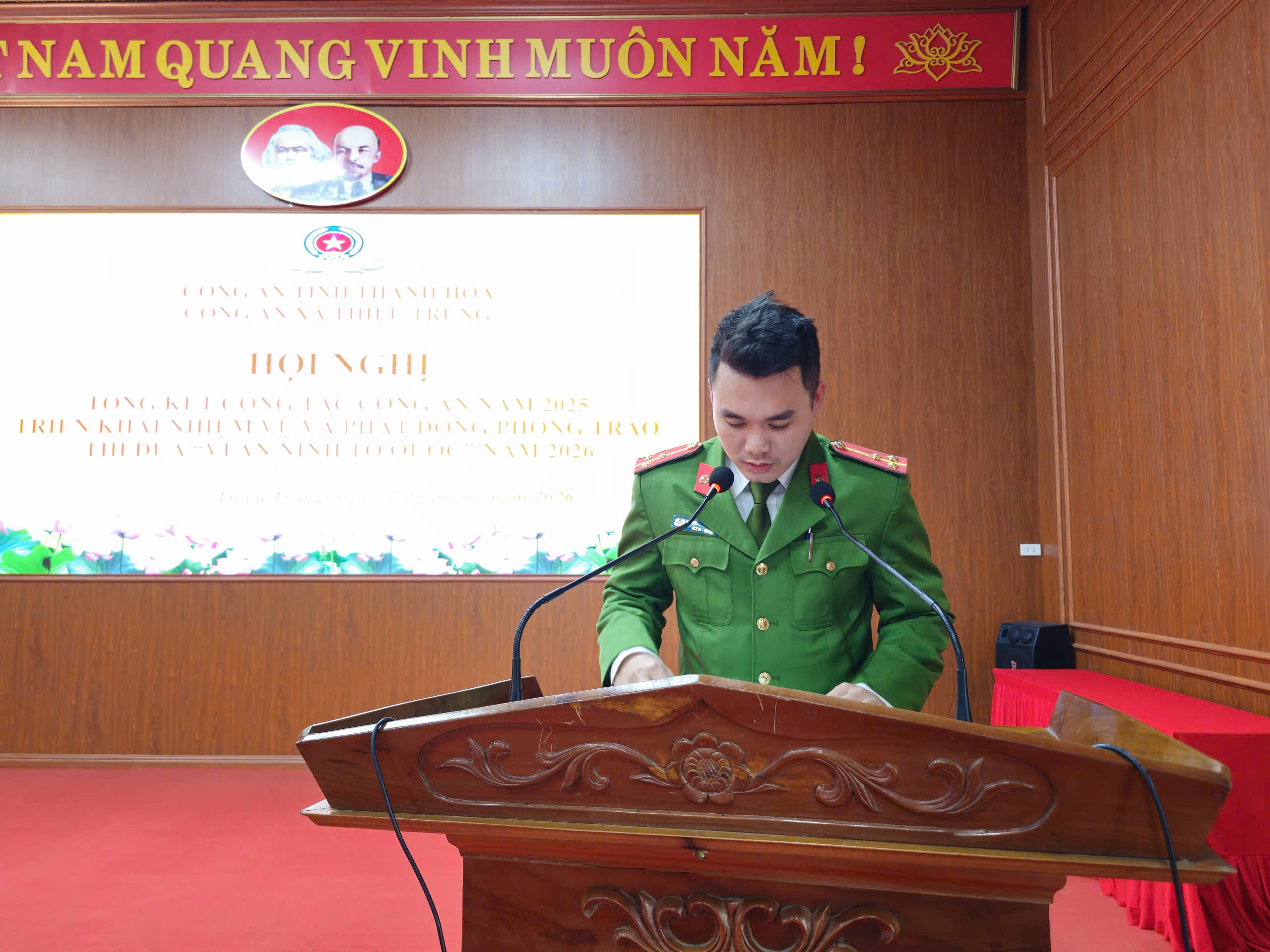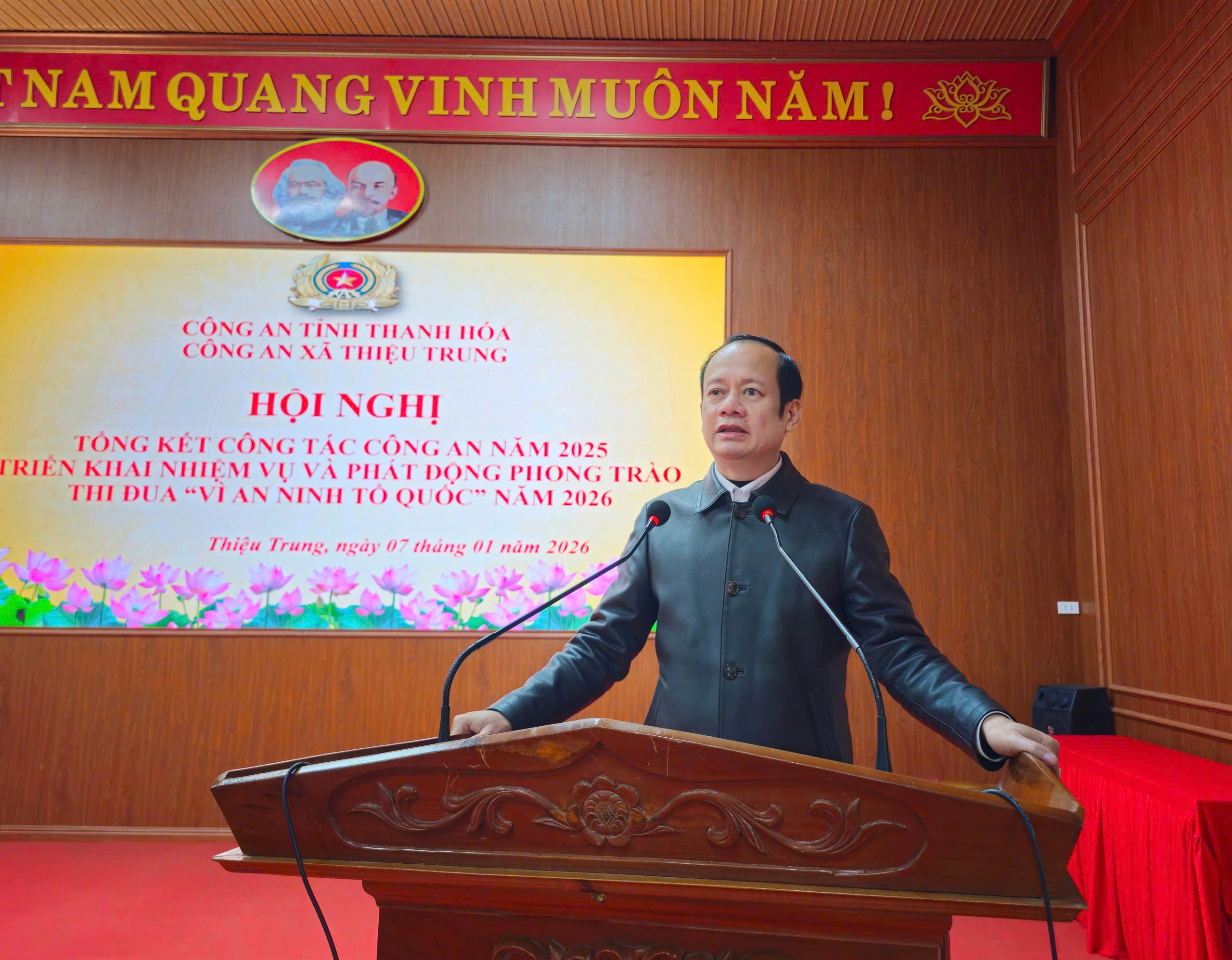 Công an xã Thiệu Trung tổ chức Hội nghị tổng kết công tác Công an năm 2025, triển khai nhiệm vụ và phát động phong trào thi đua “Vì an ninh Tổ quốc” năm 2026.