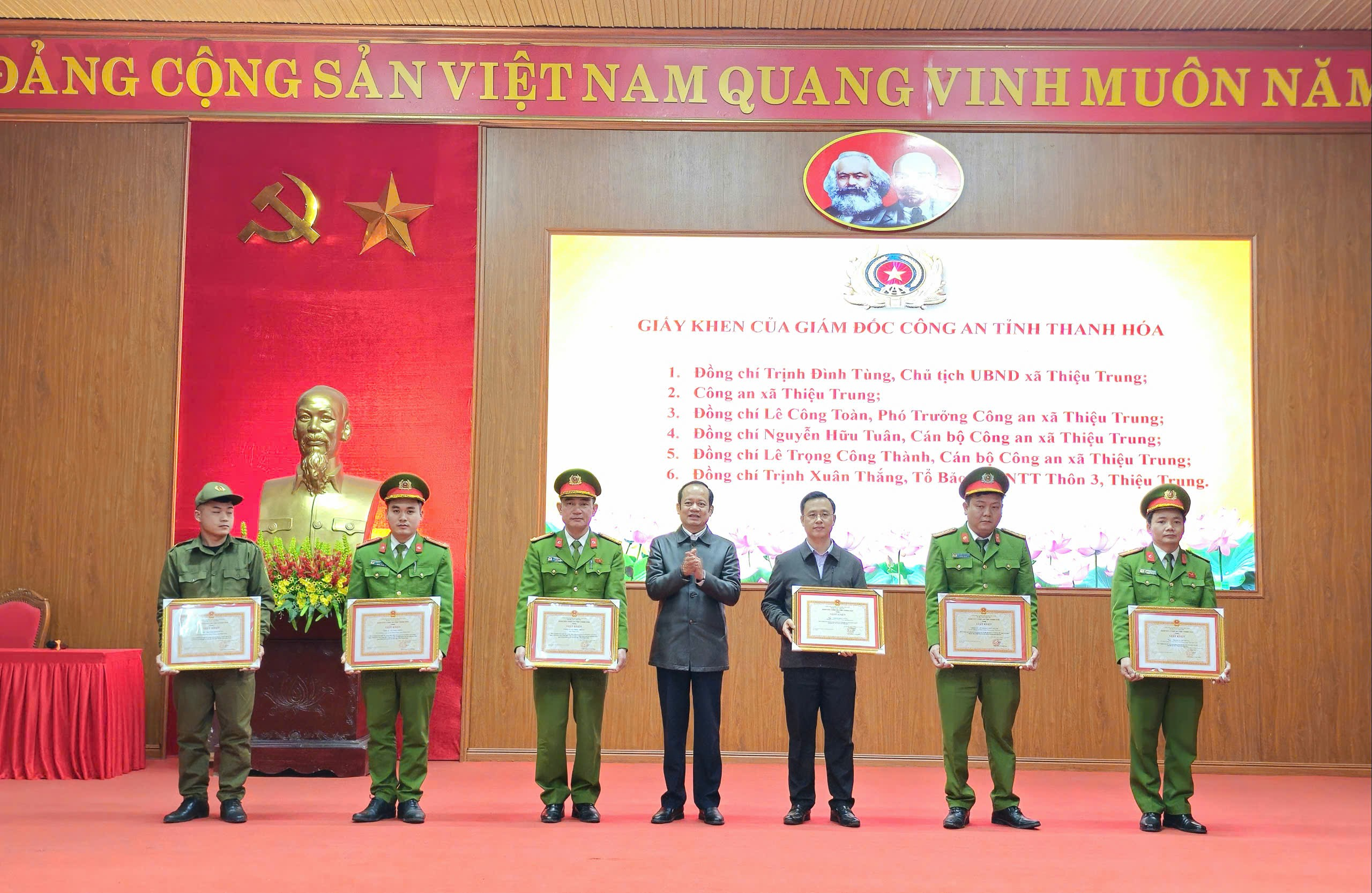Dịp này, Công an tỉnh Thanh Hoá và UBND xã Thiệu Trung đã trao tặng Giấy khen có các tập thể và cá nhân có thành tích xuất sắc trong năm 2025.