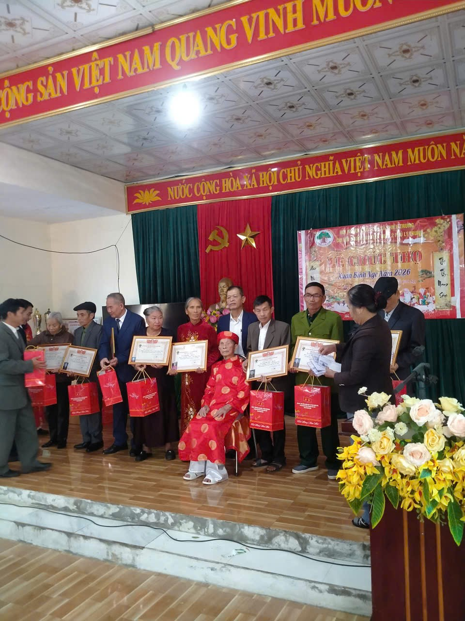 Buổi lễ được diễn ra theo đúng nghi thức trang trọng. Sau lễ chào cờ hát Quốc ca đầy thiêng liêng, đại diện Chi hội NCT thôn đã công bố quyết định chúc thọ, mừng thọ của UBND xã và danh sách các cụ được chúc thọ, mừng thọ theo từng độ tuổi. Trong đợt này, các cụ từ 70, 75 đến trên 100 tuổi đã được đại diện lãnh đạo Đảng, chính quyền và Hội NCT trao bằng mừng thọ cùng những phần quà ý nghĩa. Việc trao quà được thực hiện trang trọng, thứ tự từ các cụ cao tuổi nhất trở xuống, thể hiện sự trân trọng và tri ân đối với thế hệ đi trước.