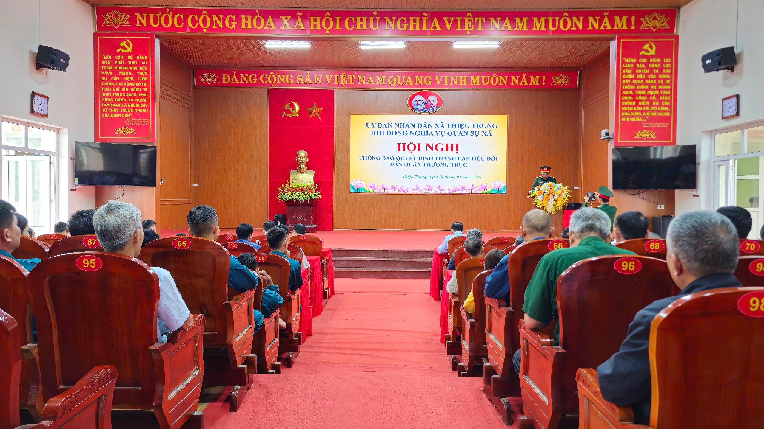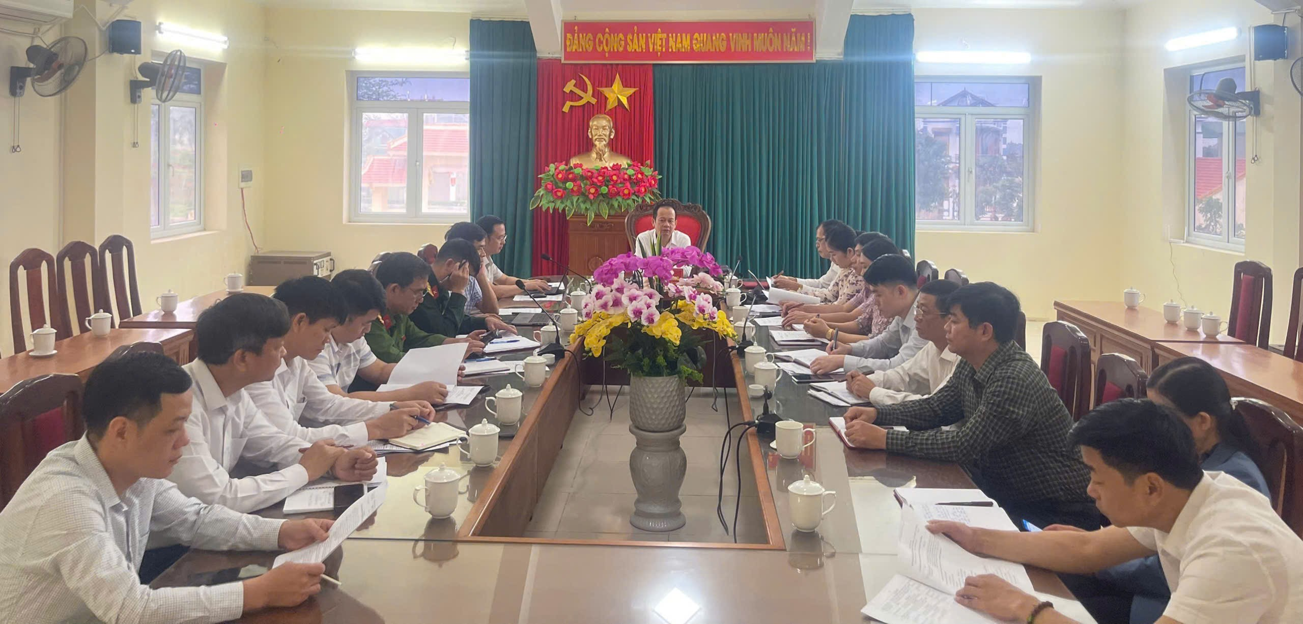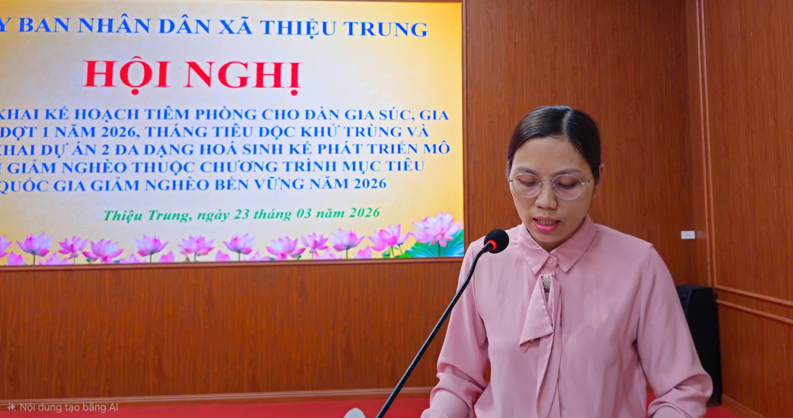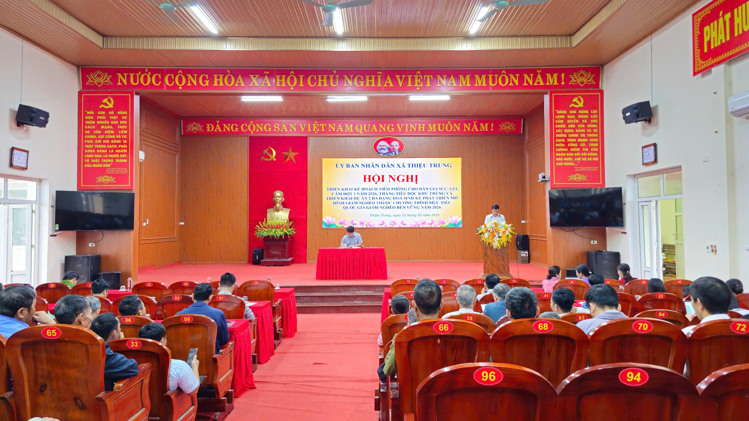 Sáng ngày 23/3/2026, tại Hội trường UBND xã, Ủy ban nhân dân xã Thiệu Trung tổ chức Hội nghị triển khai Kế hoạch tiêm phòng cho đàn gia súc, gia cầm đợt 1; Tháng tổng vệ sinh, tiêu độc, khử trùng môi trường và triển khai Dự án 2 về đa dạng hóa sinh kế, phát triển mô hình giảm nghèo năm 2026. Đồng chí Nguyễn Văn Vũ – Phó Chủ tịch UBND xã chủ trì hội nghị.