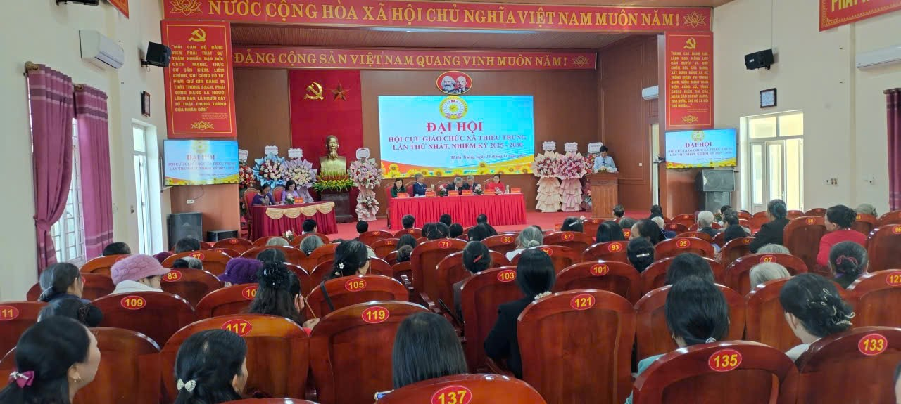 Sáng ngày 15/11, tại Hội trường Trung tâm UBND xã Thiệu Trung, Hội Cựu giáo chức xã long trọng tổ chức Đại hội Hội Cựu giáo chức lần thứ I, nhiệm kỳ 2025 – 2030. Đây là sự kiện có ý nghĩa quan trọng, đánh dấu bước phát triển mới của tổ chức Hội tại địa phương.