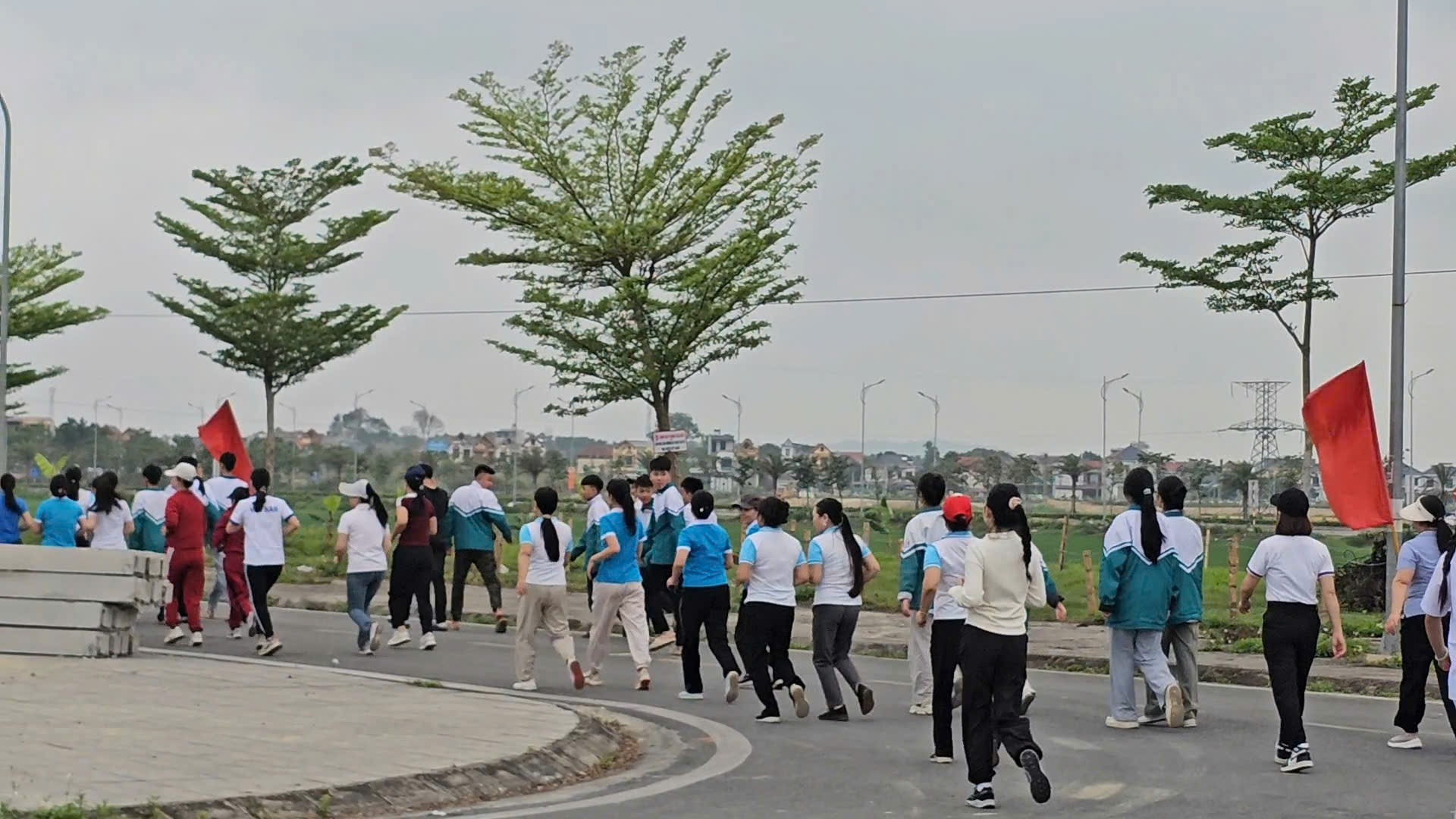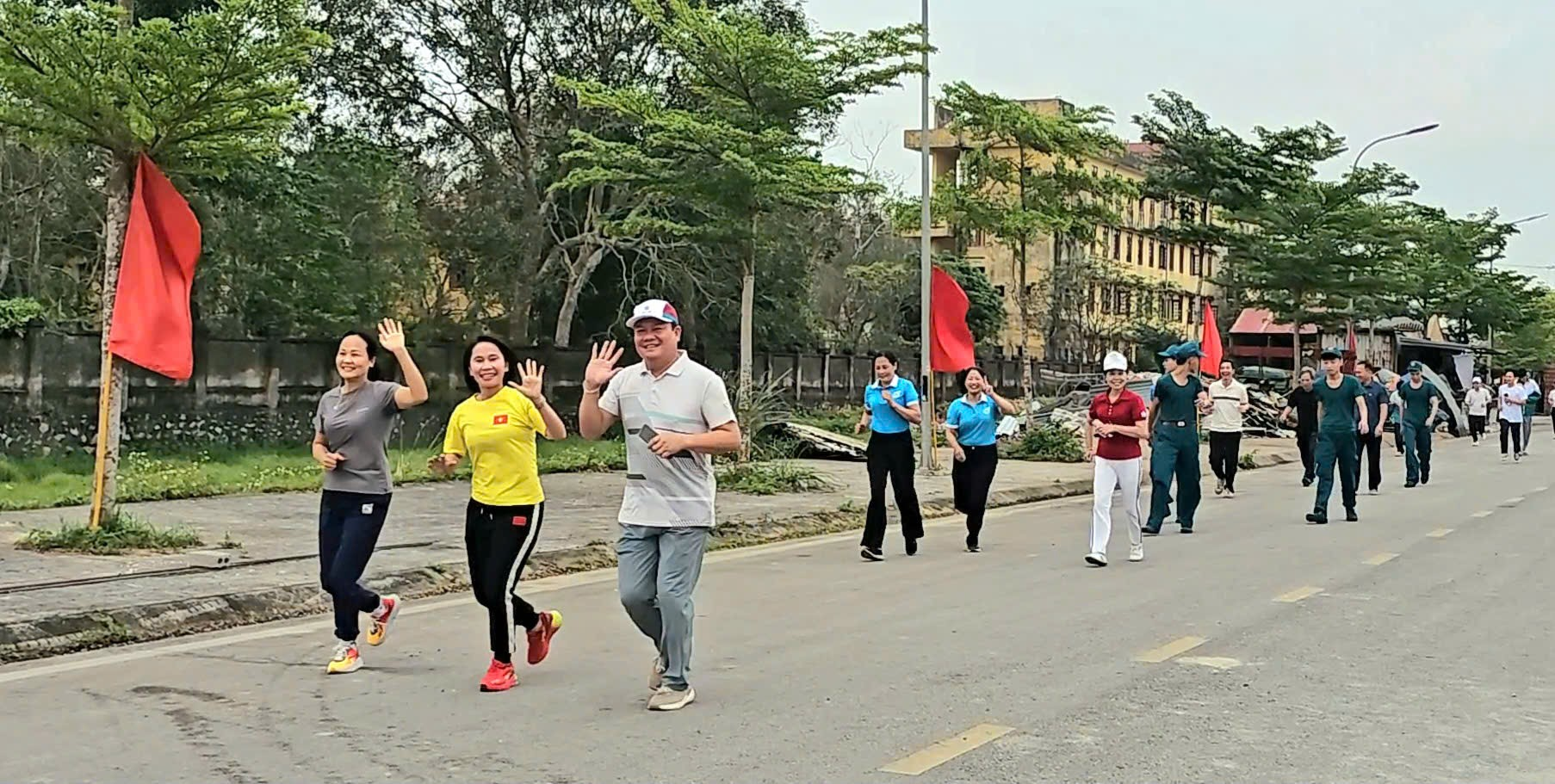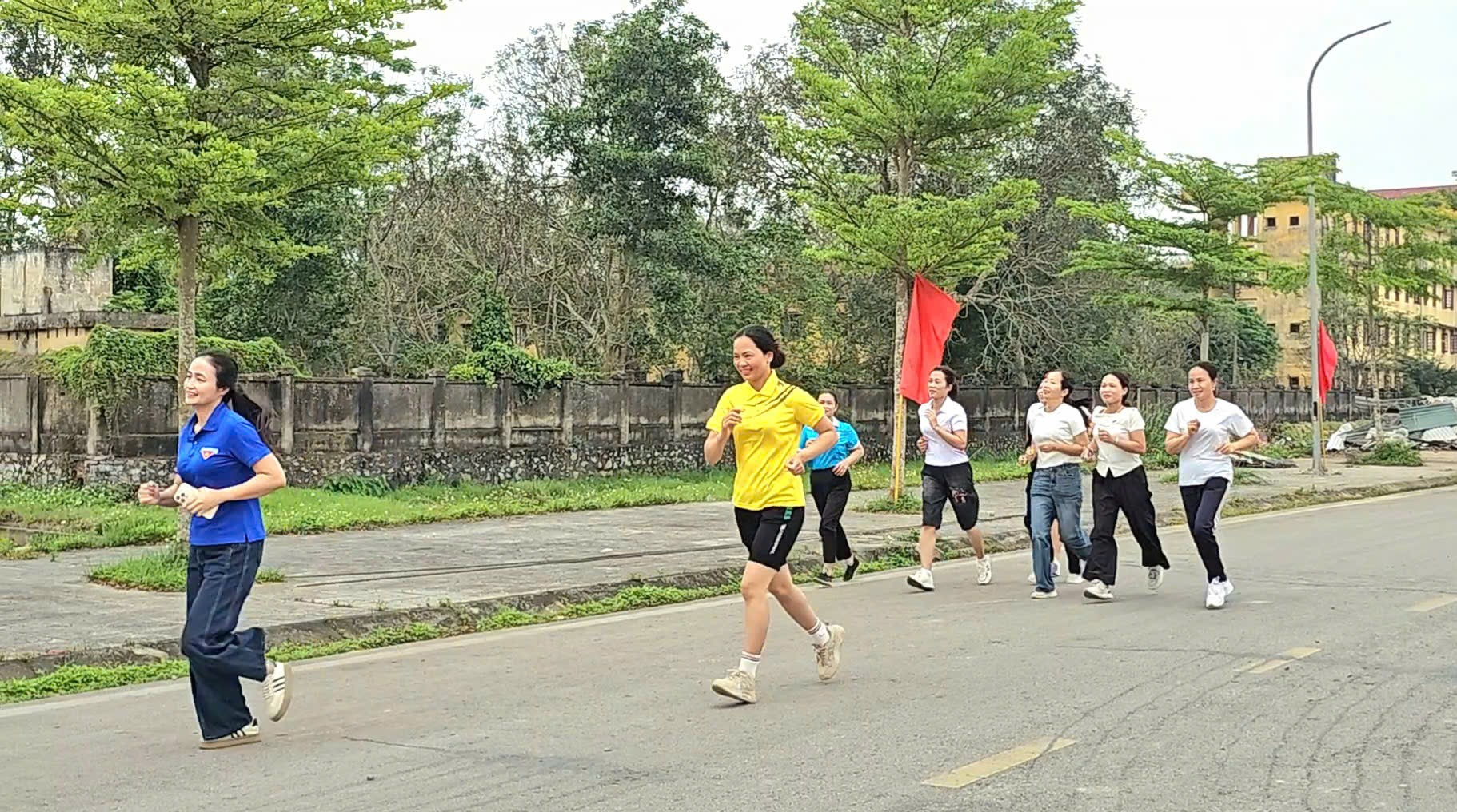 Ngay sau lệnh xuất phát, các đồng chí lãnh đạo cùng hơn 600 vận động viên gồm cán bộ, chiến sĩ công an, lực lượng an ninh trật tự cơ sở, dân quân tự vệ, đoàn viên thanh niên trường THPT Lê Văn Hưu và nhân dân các thôn đã tham gia chạy đồng hành với cự ly 1km.