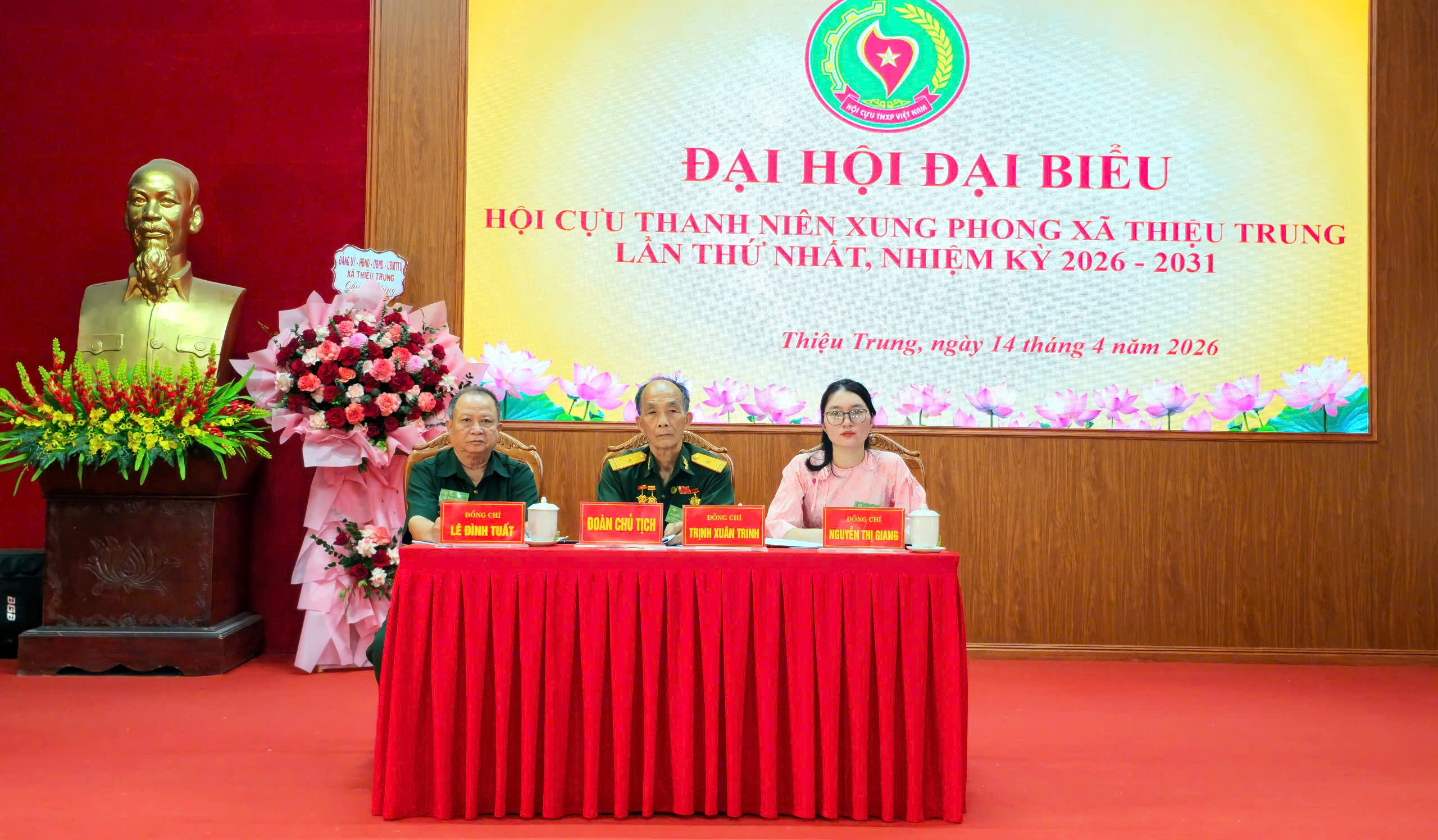 Chiều ngày 14/4, tại Hội Trường UBND xã Thiệu Trung, Hội Cựu Thanh niên xung phong xã Thiệu Trung đã long trọng tổ chức Đại hội lần thứ I, nhiệm kỳ 2026 - 2031. Dự và chỉ đạo Đại hội có các đồng chí Nguyễn Văn Phúc - Phó Bí thư Thường Trực Đảng uỷ, lãnh đạo Đảng ủy, HĐND, UBND, MTTQ xã Thiệu Trung; đại diện Hội Cựu TNXP tỉnh Thanh Hóa cùng đông đảo đại biểu chính thức đại diện cho 354 hội viên trong toàn xã.