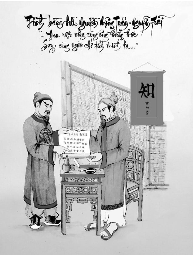 Bức họa bài thơ của Cúc Pha “Hạ thừa chỉ Ức Trai tân cư”, tác giả: Đăng Văn, 2019