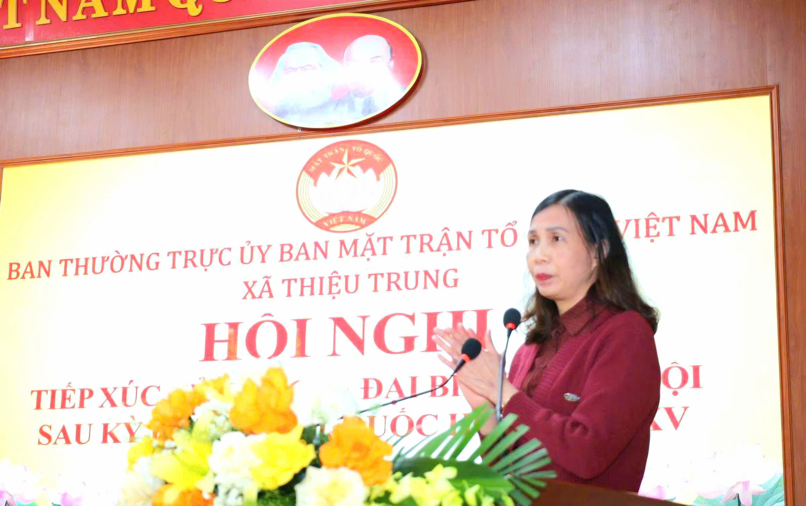 Tại hội nghị tiếp xúc, ĐBQH Cầm Thị Mẫn thông tin nhanh tới cử tri kết quả Kỳ họp thứ 10, Quốc hội khóa XV. Các cử tri xã Thiệu Trung đánh giá cao kết quả Kỳ họp thứ 10 - kỳ họp lịch sử, cử tri hoan nghênh tinh thần làm việc nghiêm túc, trách nhiệm của Quốc hội, đồng thời các cử tri cũng bày tỏ tin tưởng vào sự lãnh đạo, điều hành của Đảng, Nhà nước trong quá trình xây dựng và phát triển đất nước.